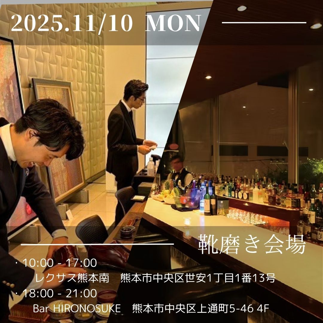 一部ではレクサス熊本南店で、二部では熊本城が見えるバー、HIRONOSUKEで靴磨きを行います!